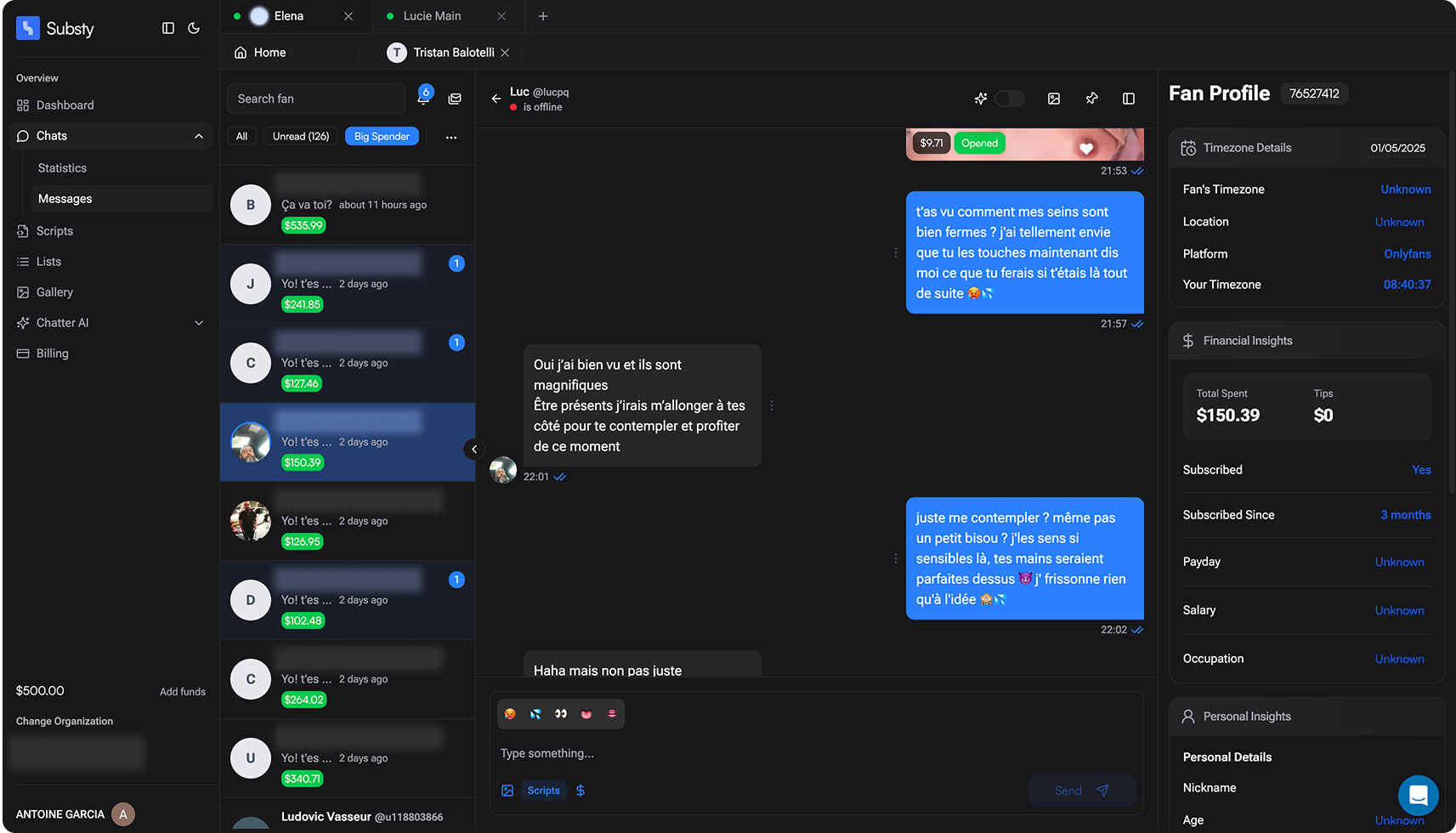 ✅ 100% autonomous AI or combined with your chatters : The AI can fully manage your chats (some agencies are already generating $50,000+/month with AI alone) or work alongside your human team to effectively target your most profitable fans.